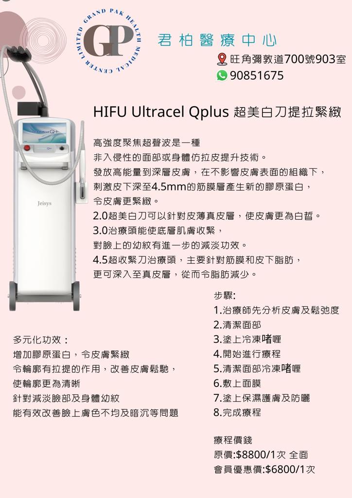 HIFU(高強度聚焦超聲波)是一種非侵入性的醫學美容療程,利用超聲波能量精準作用於皮膚深層,刺激膠原蛋白再生,達到提升緊緻的效果。適用於面部輪廓改善、皺紋減少及整體膚質提升。